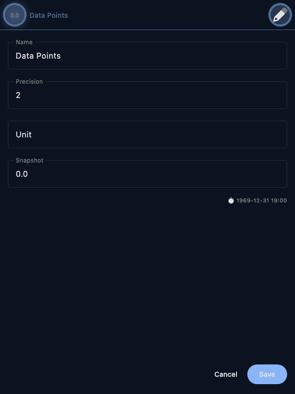 A Data Point represents a single measurable value in your automation system, such as temperature, humidity, or sensor readings. Data points continuously collect and store time-series data from connected devices or sensors. They can be configured with triggers to detect specific conditions, perform calculations, and integrate with the rule engine for automated responses.